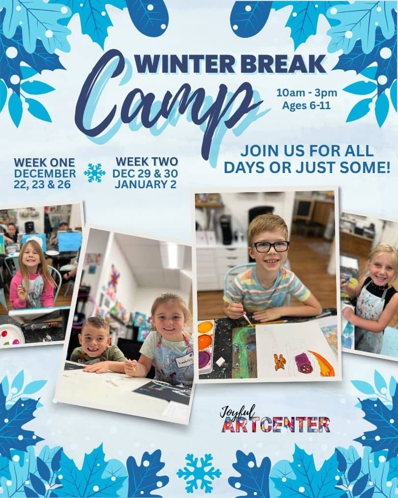 Fall Break Camp is Filling Fast! November 24, 25, & 26 • 10am - 3pm • Ages 6-8 Looking for something fun and creative for your kids during fall break? Our Fall Break Camp offers new mixed-media art projects every day, with flexible single-day or full-three day sign-ups for plenty of creativity, variety, and fun. SIGN UP Plan Ahead for Winter Break! TWO SESSIONS • 10am - 3pm • Ages 6-8 December 22, 23, & 26 • December 29, 30, & January 2 Looking for a fun way to keep the kids busy while family...